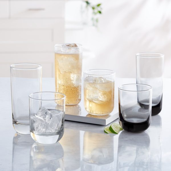 - Polished multi-purpose smoke-colored glasses set ideal for serving gin and tonics and old fashioned cocktails includes eight 16.25-ounce drinking glasses and eight 12.25-ounce rocks glasses
